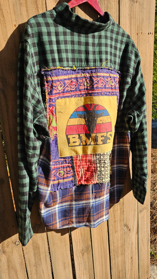 Grateful Dead 13 Point Kantha Bolt Bleached Flannel size Medium