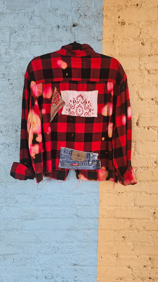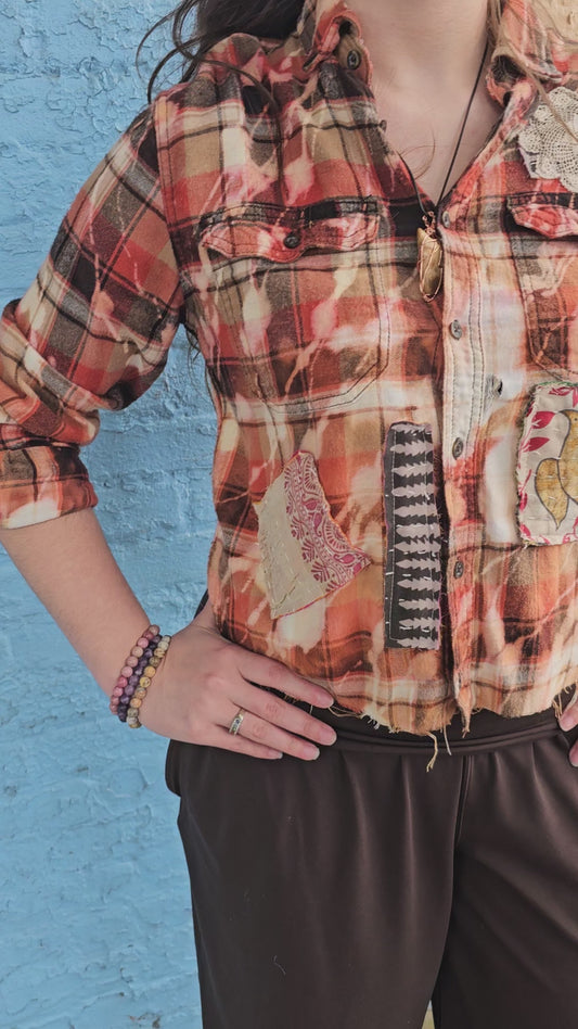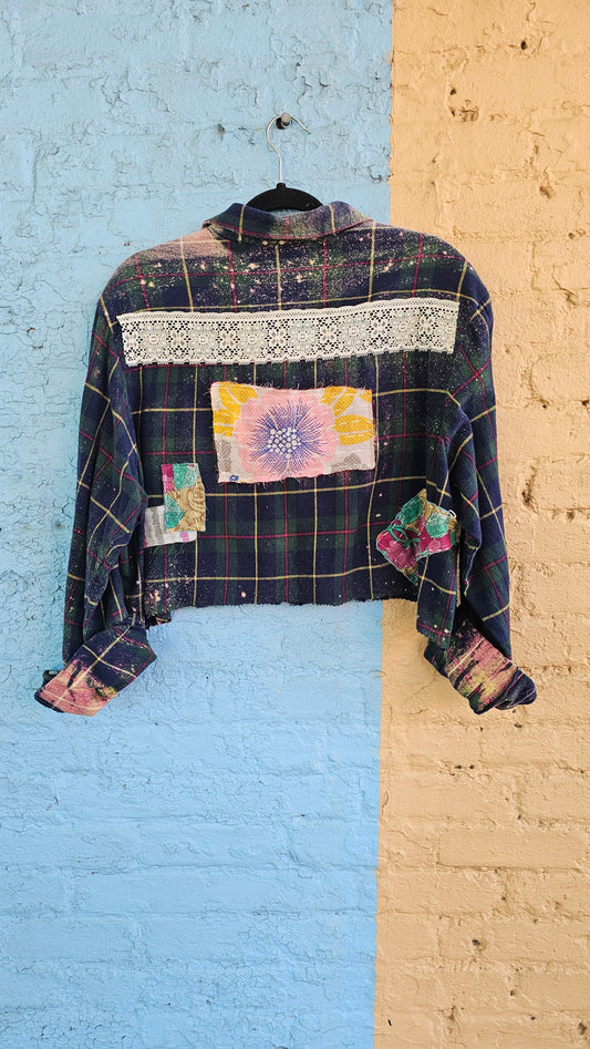 Cropped Flannel Shirt | Upcycled Distressed Flannel Size SMALL#1355