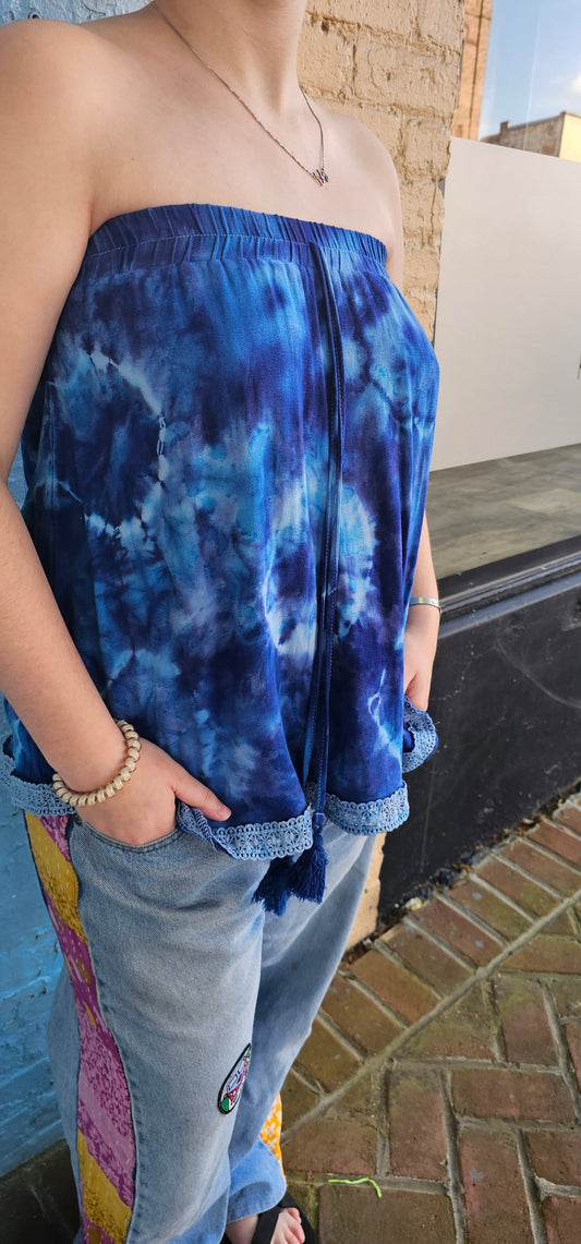 Strapless Hippie Top Indigo Tie Dye