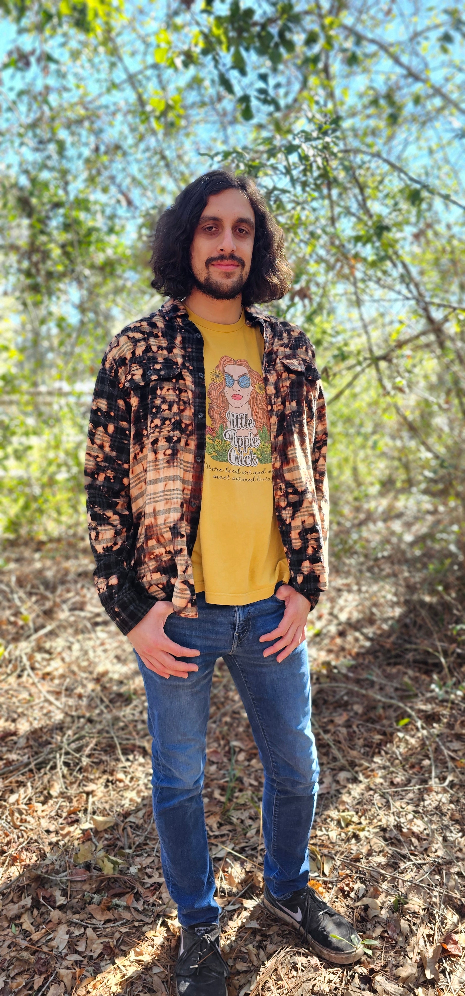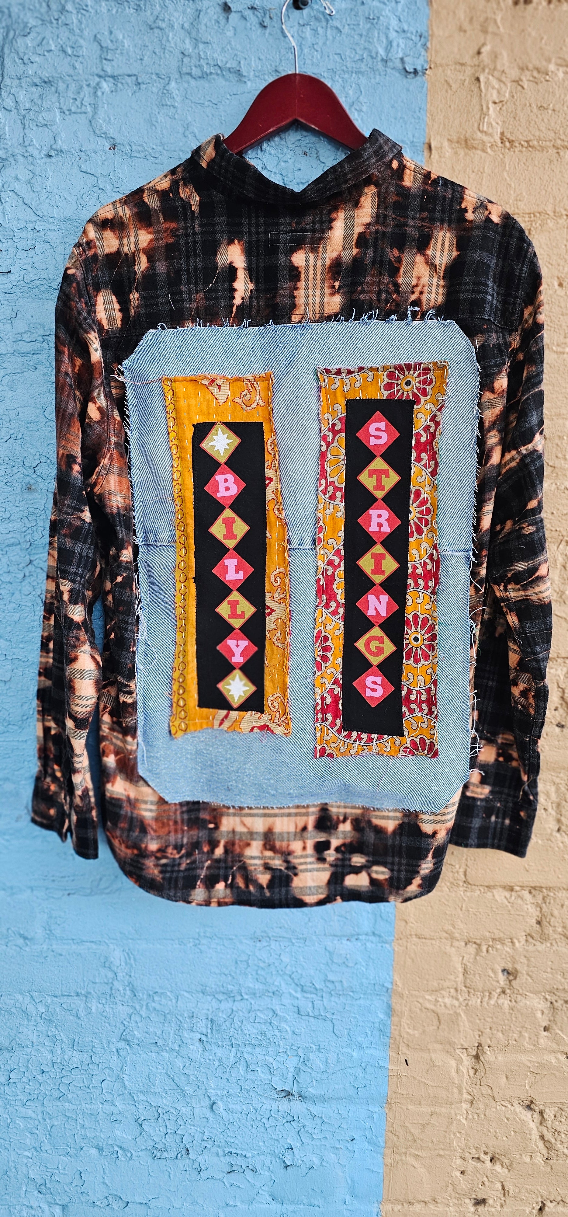 This is your new favorite shirt! It is a size XL and READY TO SHIP. Flannel is mix of blacks and browns. The back includes a Billy Strings image (purchased, never reprinted)