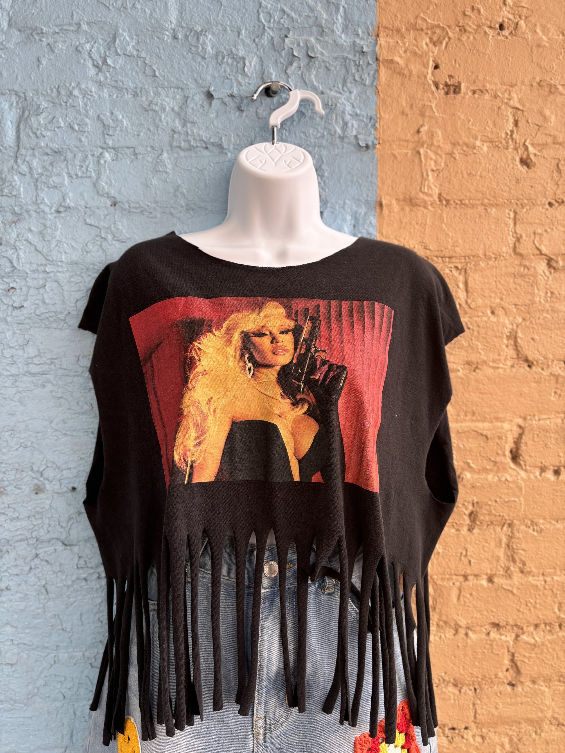 Unleash your inner free spirit with our Upcycled Fringe Tops! These unique pieces are handcrafted from reclaimed t-shirts, giving them a new lease on life while adding a touch of bohemian flair to your wardrobe. Each top features playful fringe detailing, perfect for festival season, casual outings, or just adding a bit of fun to your everyday look.