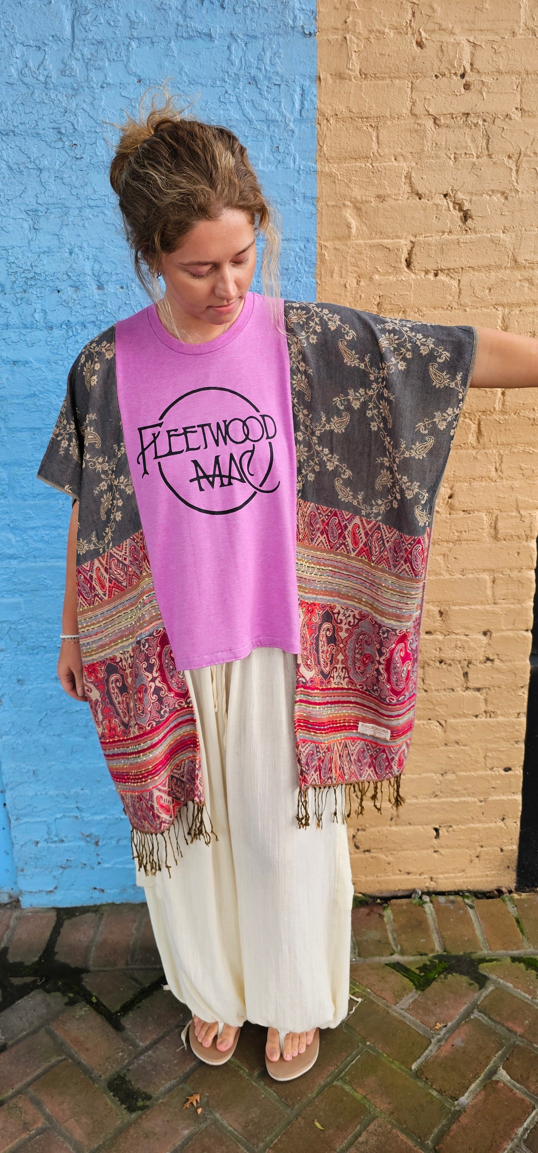 Each of our Pashmina Tops is a one-of-a-kind creation—made from upcycled, well-loved band tees and adorned with soft, flowing pashmina scarves. These tops are lovingly handcrafted for the wild-hearted, music-loving bohemian who isn’t afraid to stand out.