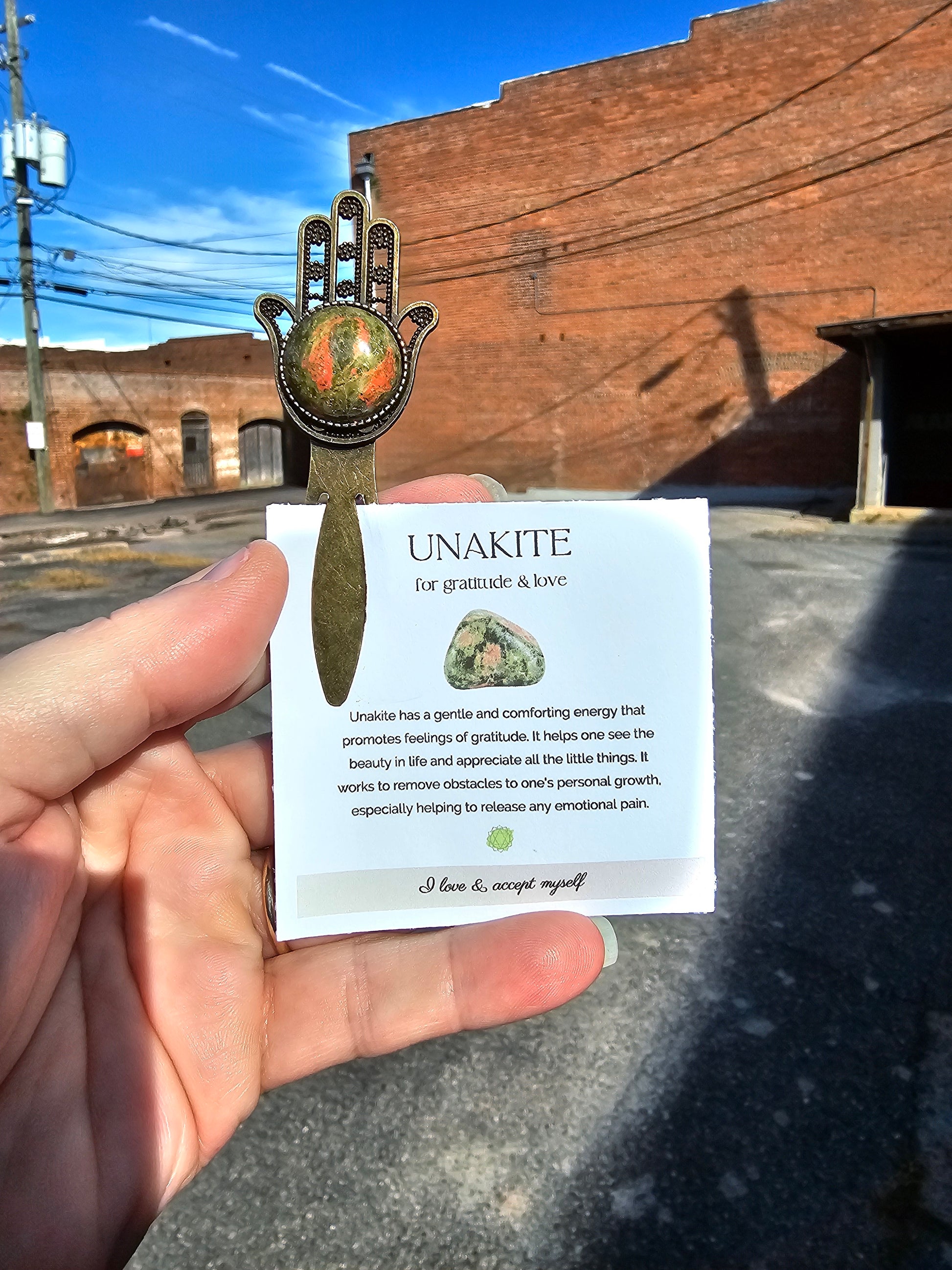 Add a touch of spiritual elegance to your reading with our handmade Hamsa crystal bookmarks. Each bookmark features a beautifully crafted Hamsa, symbolizing protection, good fortune, and positive energy. Paired with hand-selected crystals known for their healing properties, these bookmarks are perfect for both book lovers and spiritual enthusiasts.