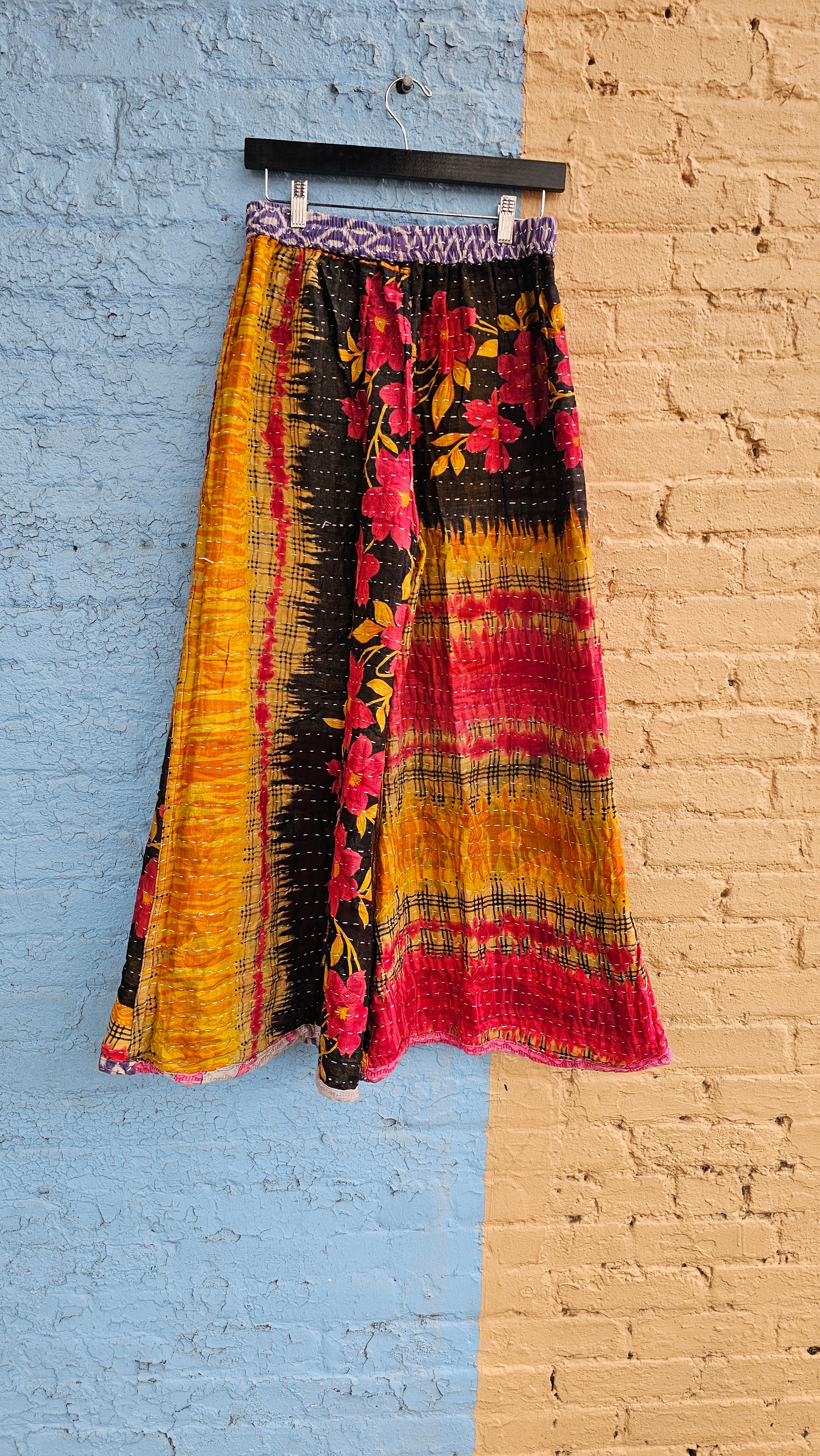 Flip, twist, and twirl in these totally reversible Kantha pants! Rock two completely different looks in one pair—because why choose when you can have it all? The elastic and drawstring waistband keeps you comfy all day long, while functional pockets on both sides mean your essentials always have a home. Perfect for the free-spirited fashionista who loves versatility and vibrant style.