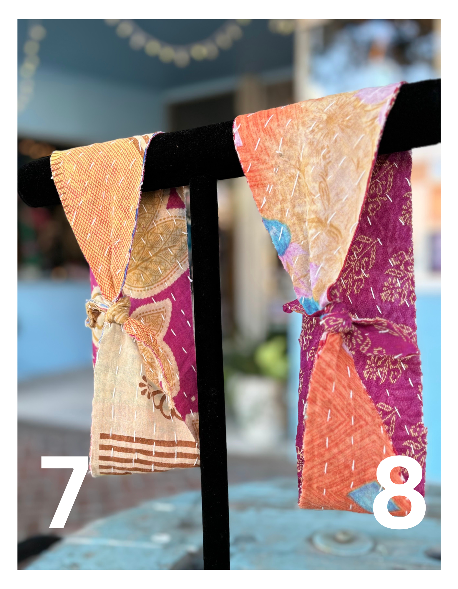 Introducing your favorite headband! Tie back (or front) kantha headbands. Each one unique and one of a kind. Best part, they are REVERSIBLE. Literally 2 headbands in 1.