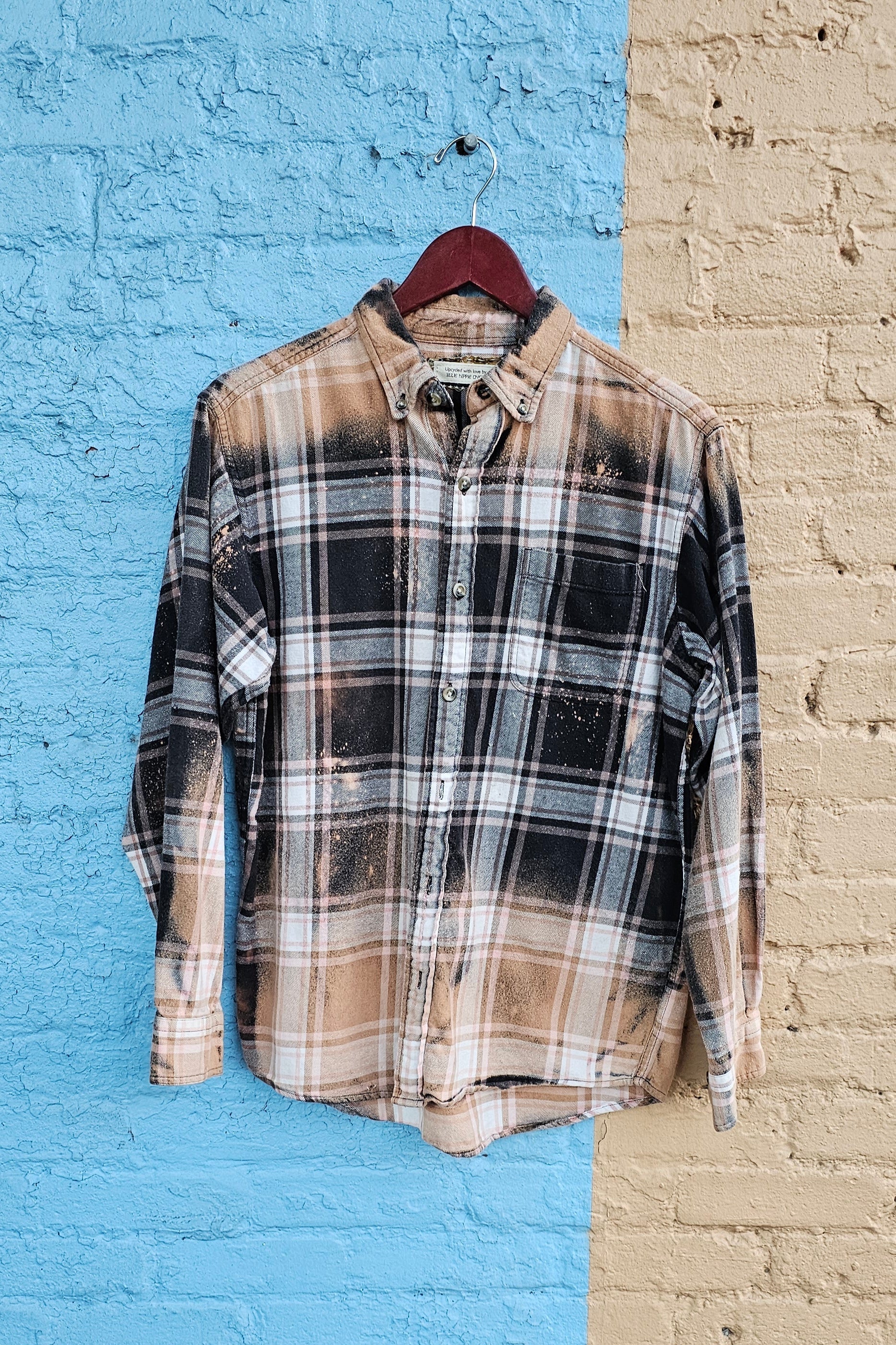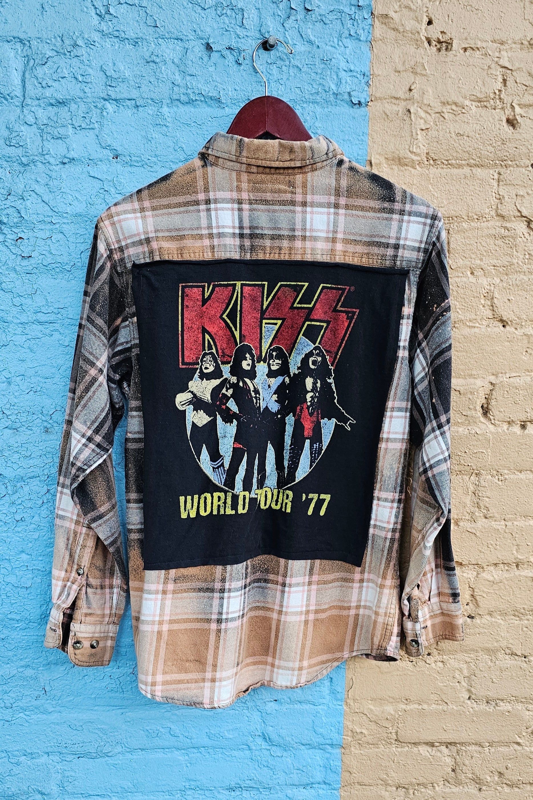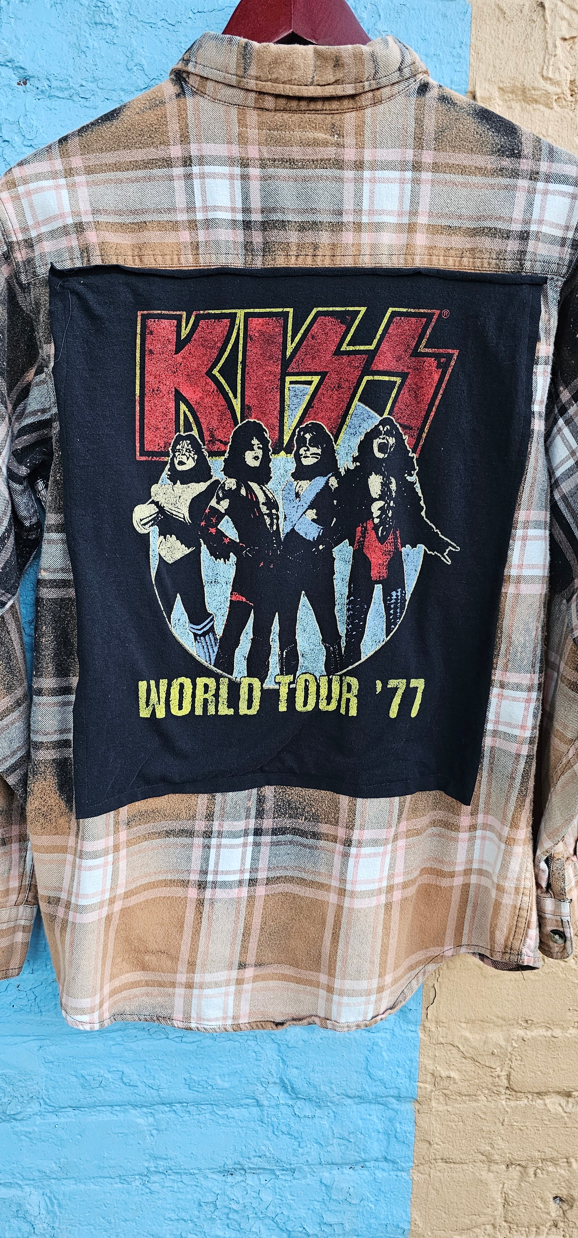 This is your new favorite shirt! It is a size Medium and READY TO SHIP. Brown and Black flannel. KISS image on the back