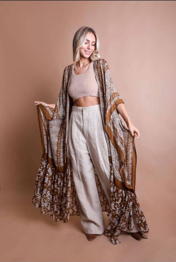 Behold our newest set of kimonos, the epitome of breezy sophistication! The paisley pattern is PERFECT for layering over a casual outfit or adding a dash of glamour to an evening ensemble.
