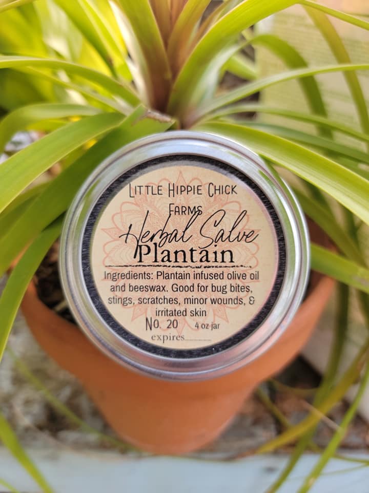 Plantain herbal salve is a must in my first aid cabinet! I use Plantain to help with bug bites, stings, scratches, cuts, minor burns, and irritated skin.