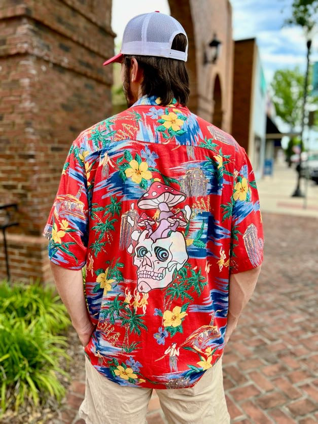 Dive into the psychedelic waves of the tropics with our Upcycled Hawaiian Shirt!