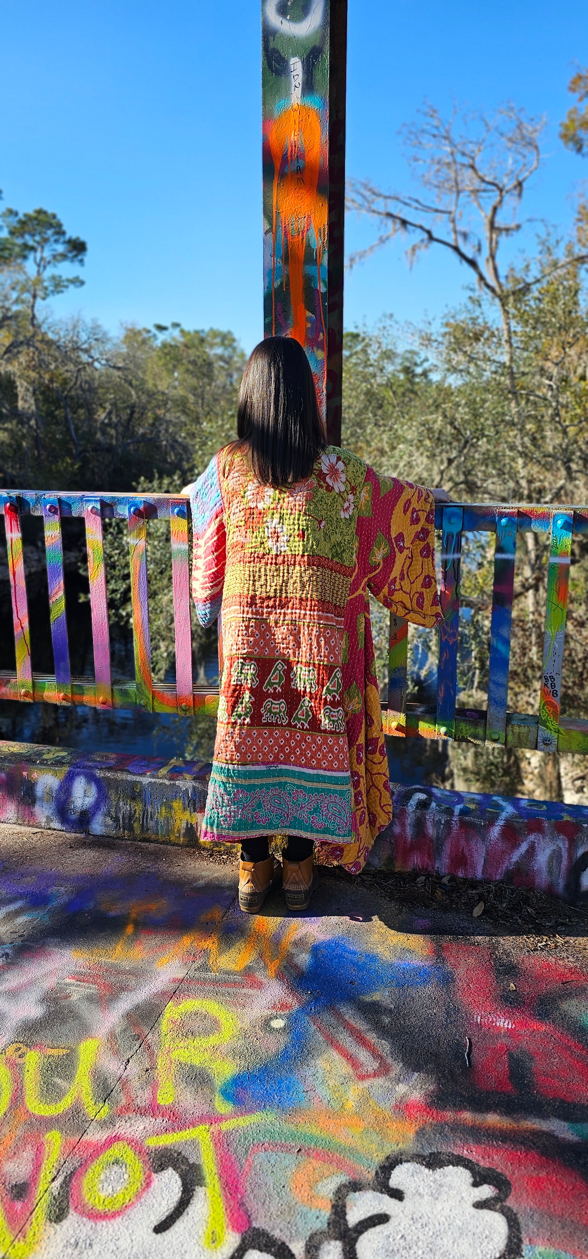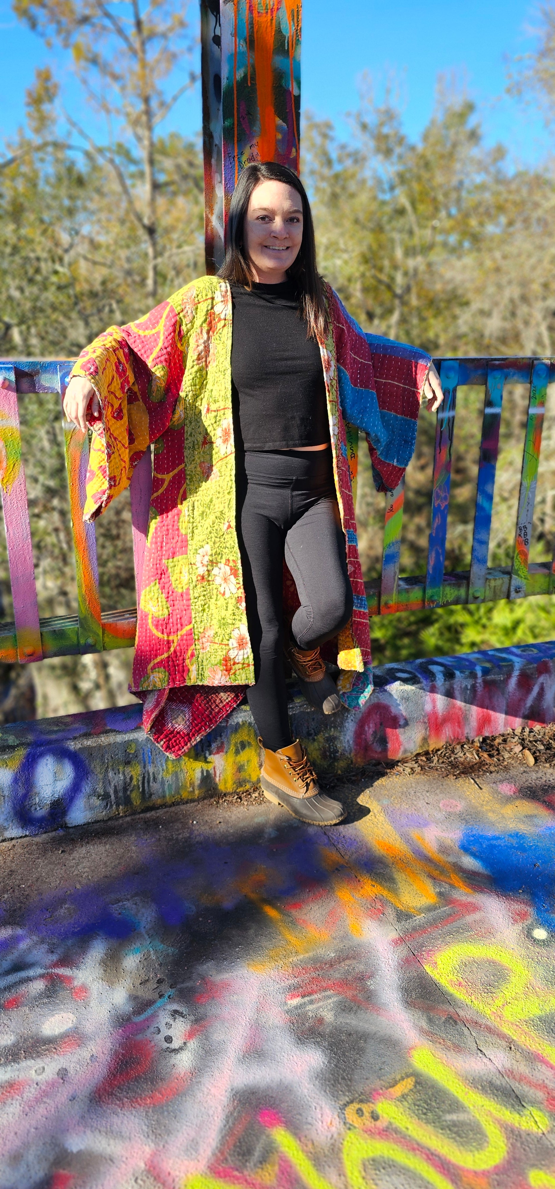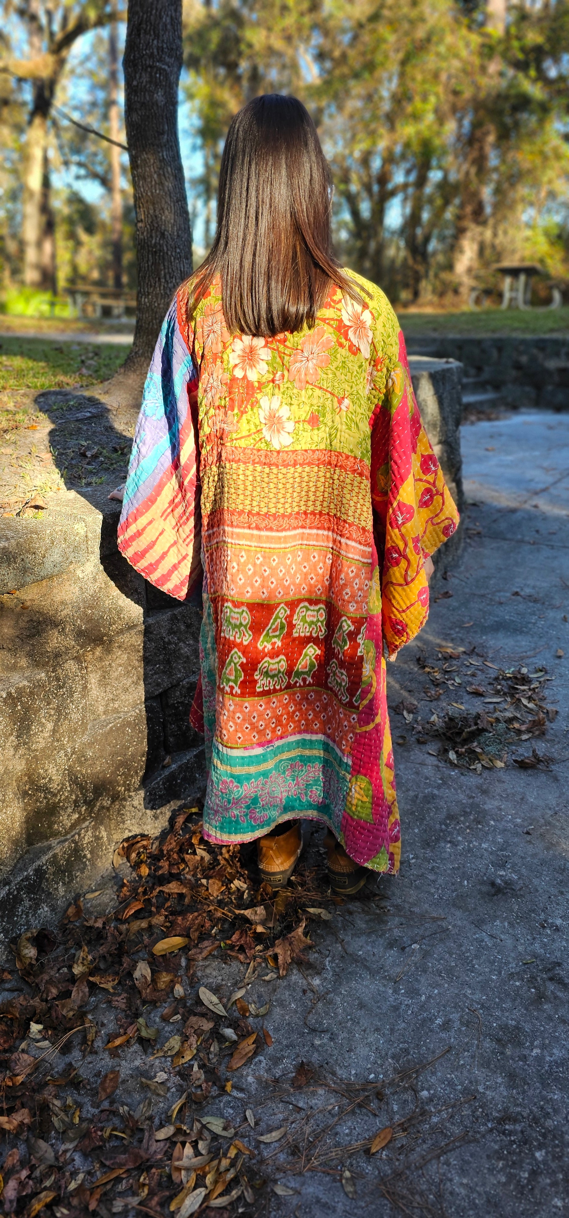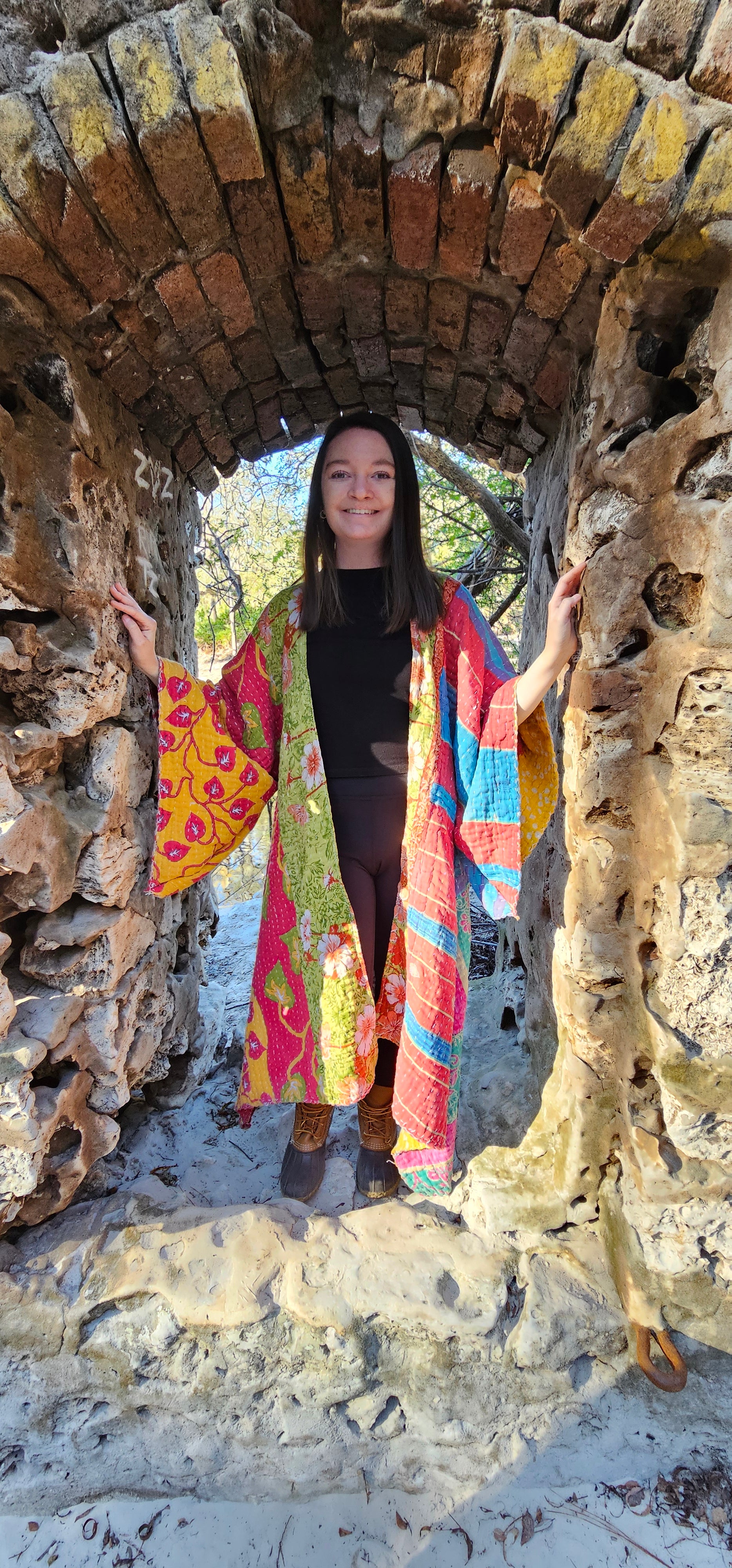 Our Kantha Kimonos are handmade right here at Little Hippie Chick in downtown Tifton, GA. With all of your good vibrations and groovy flow this kimono would be perfect for anything! From chilly festival nights to cozy nights at home, this Kimono is calling your name!