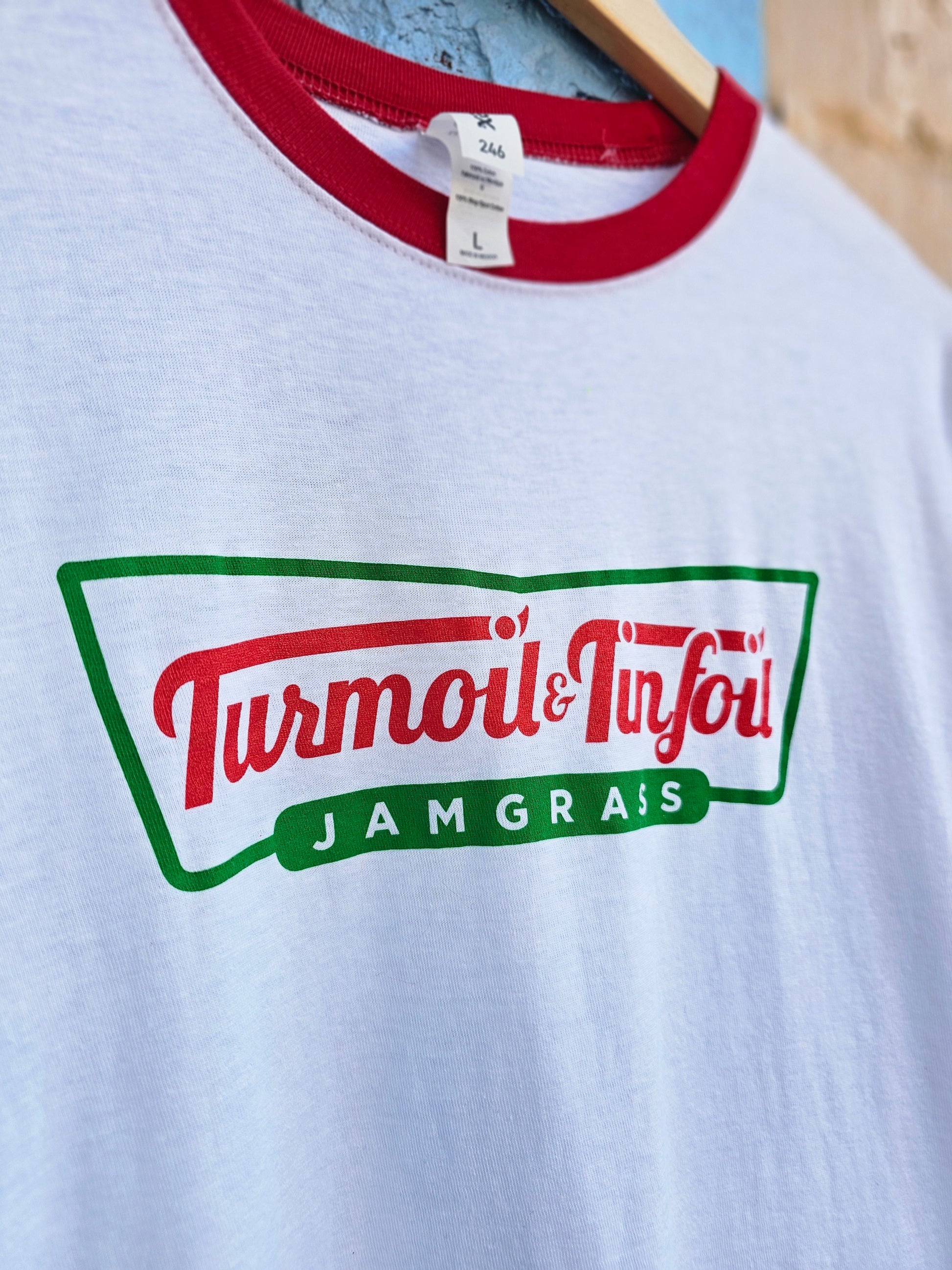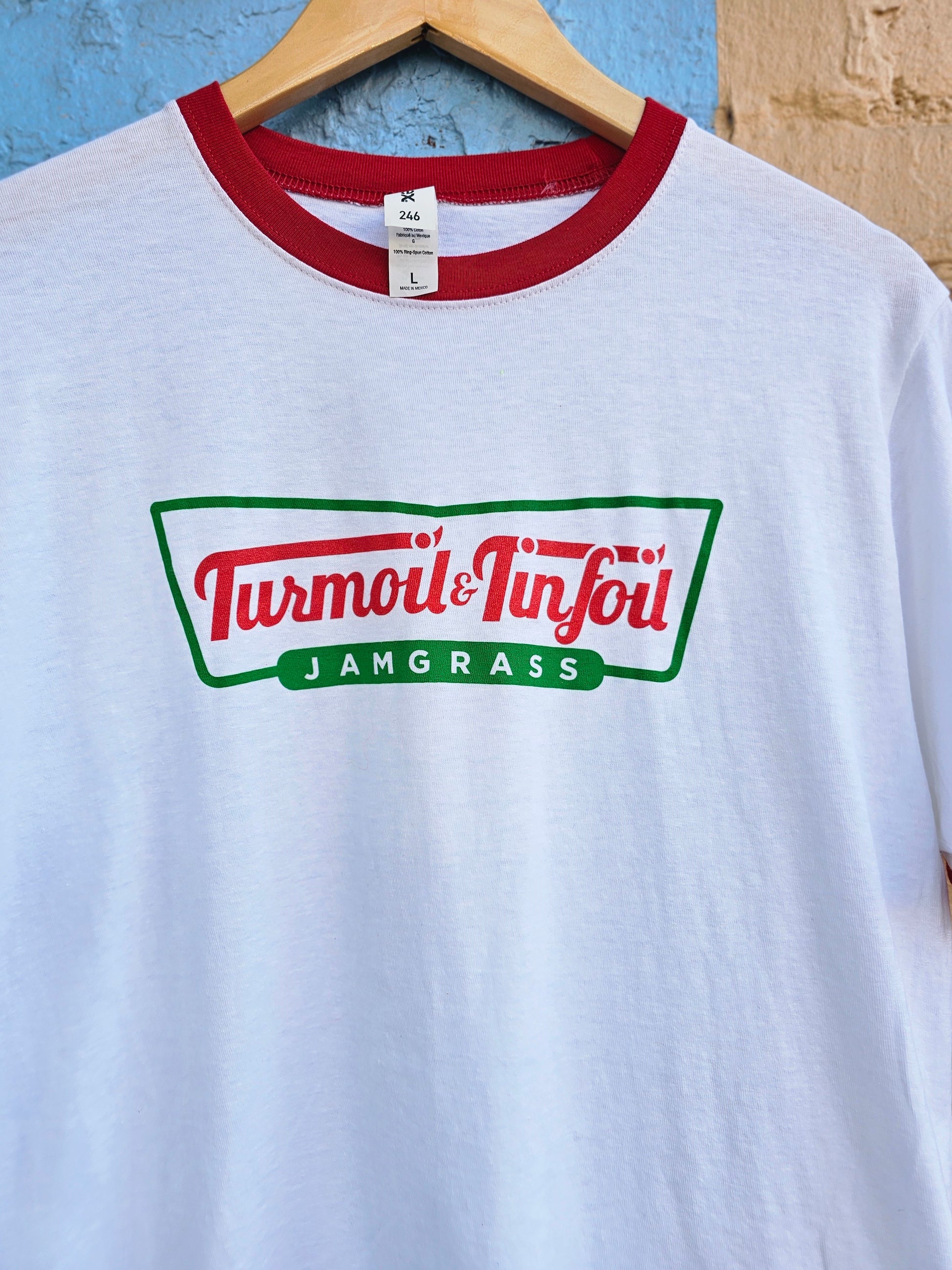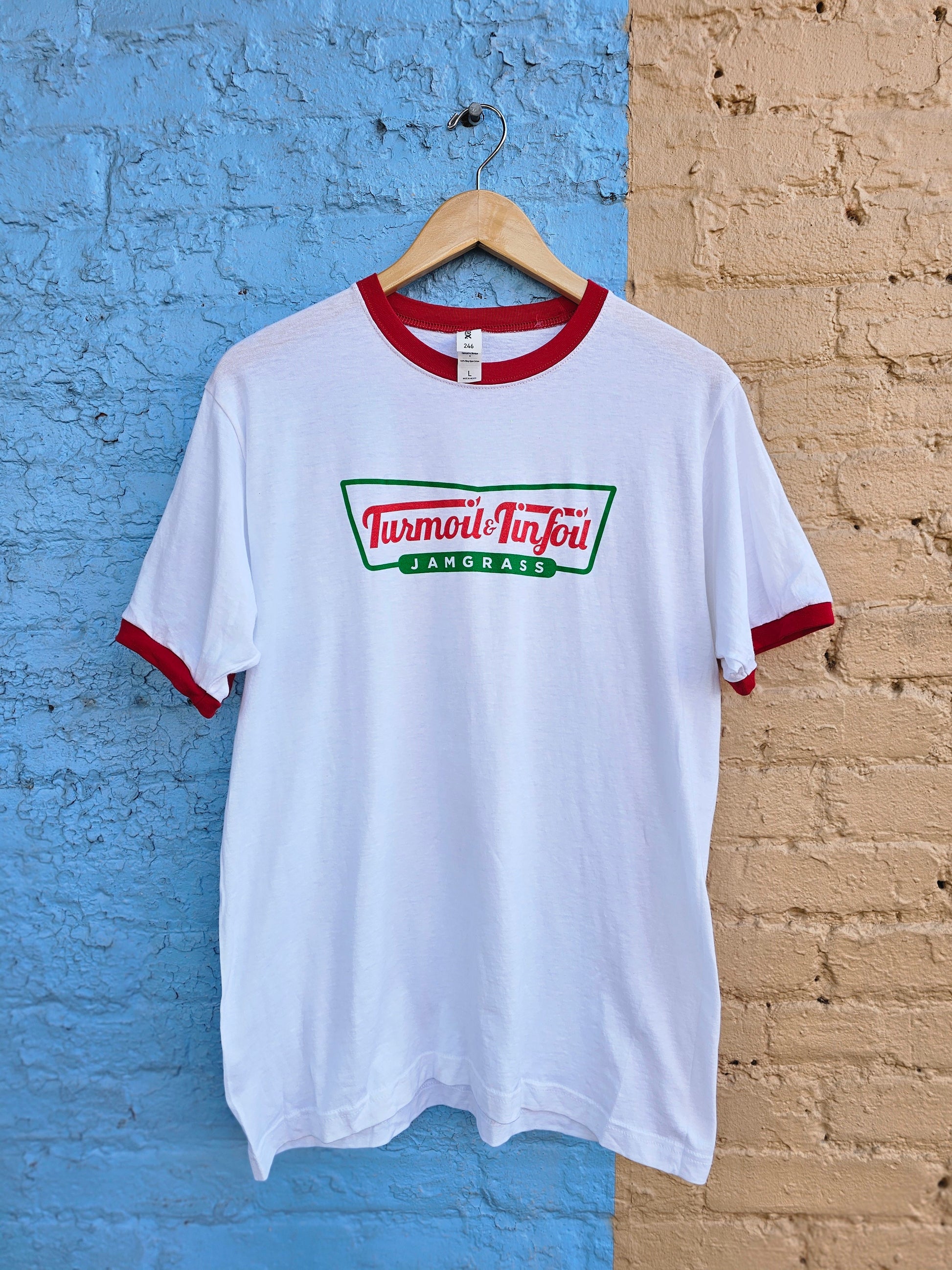 This Tultex 100% USA cotton unisex ringer tee is a in premium white on with short sleeves and contrast ringer binding at neckline and sleeves.