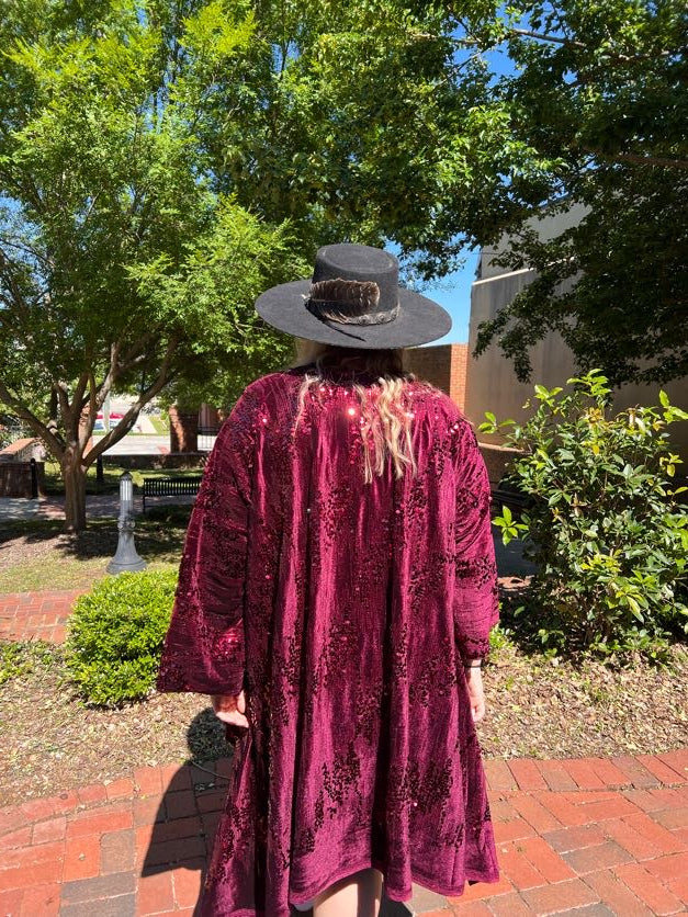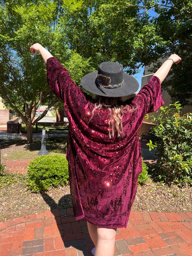Wine Sequin Robe