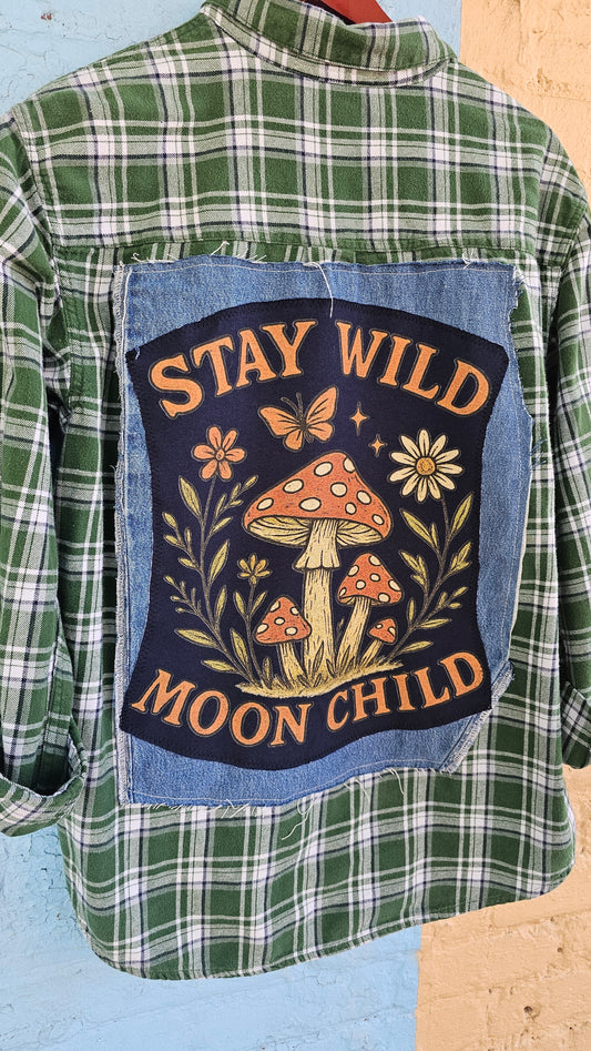 Stay Wild Moon Child Flannel with Denim Accent size L #1368