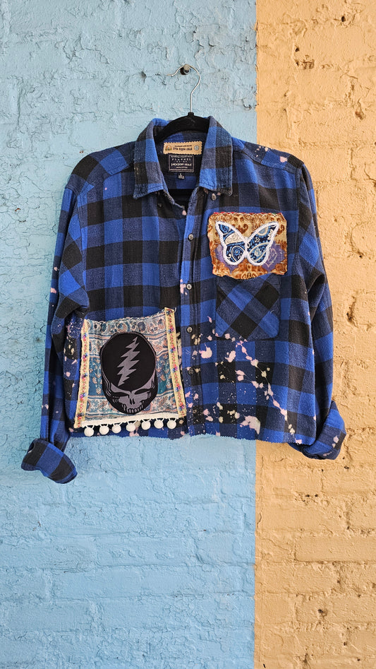Grateful Dead Upcycled Distressed Cropped Flannel Size LARGE #1375