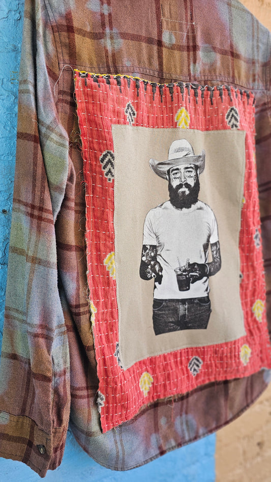 Post Malone Upcycled Bleached Flannel size LARGE #1373